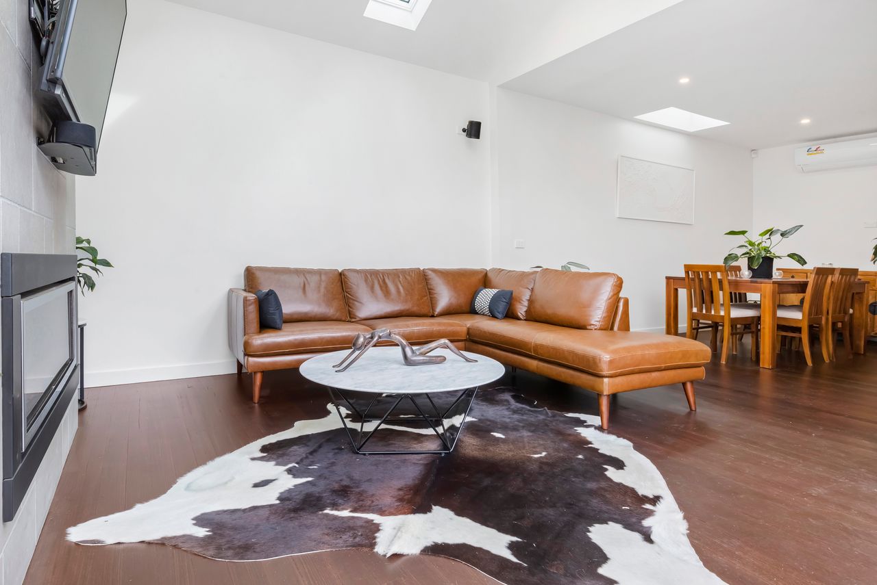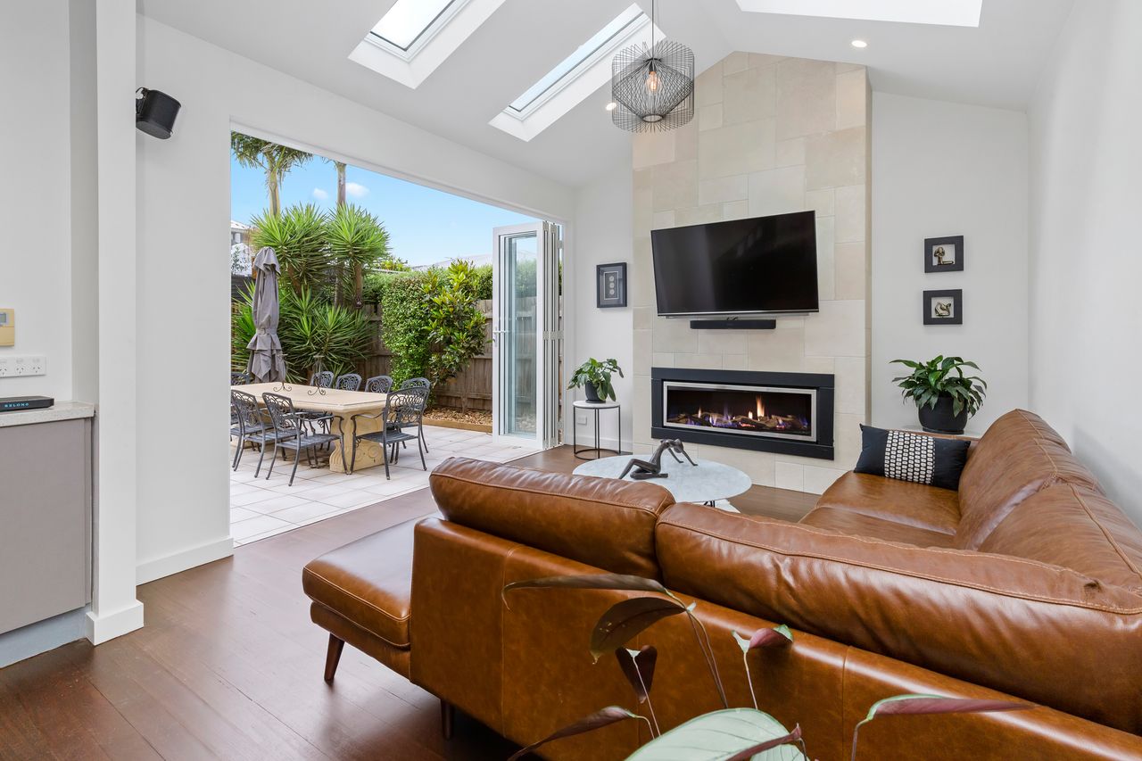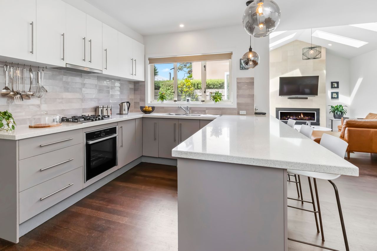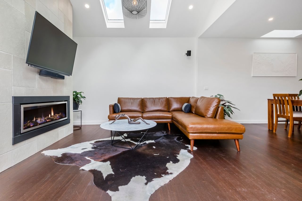 Celebrating the seaside lifestyle, the home boasts large entertaining spaces including a stunning, newly renovated lounge with leather sofa, gas-log fire and large TV, while an open-concept cooks kitchen includes quality appliances and a relaxed flow into the adjoining dining area and outdoor deck beyond.