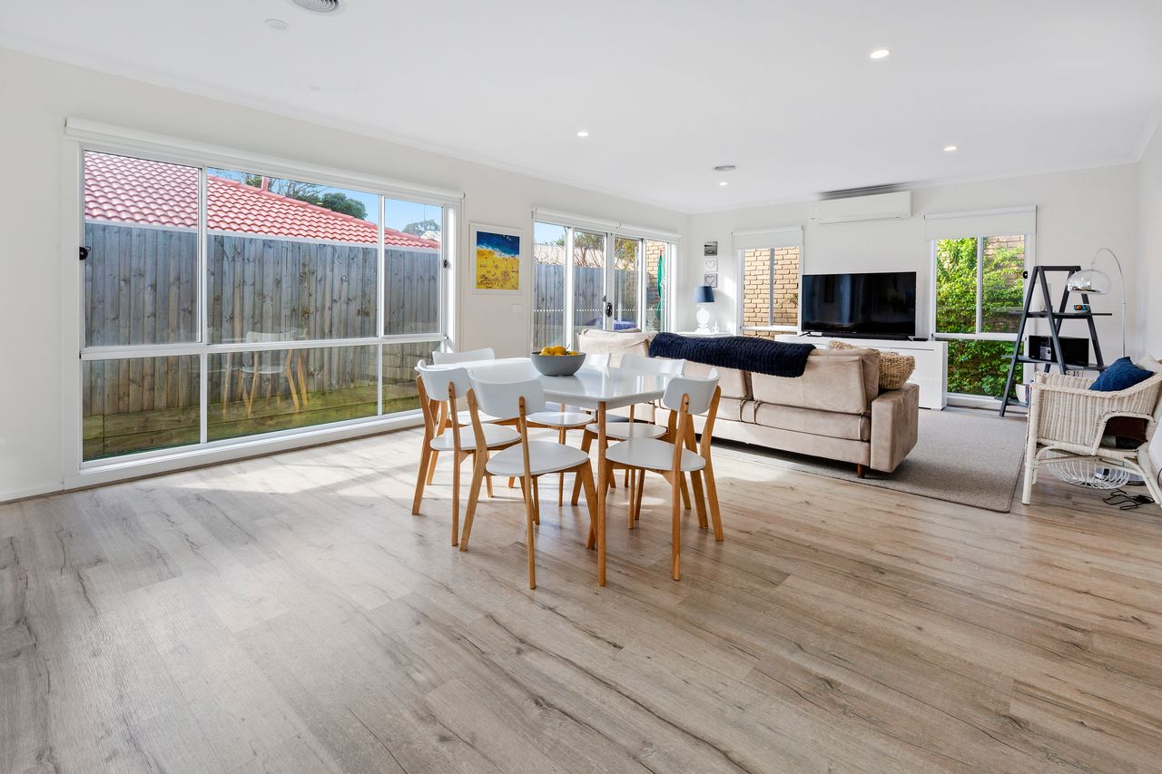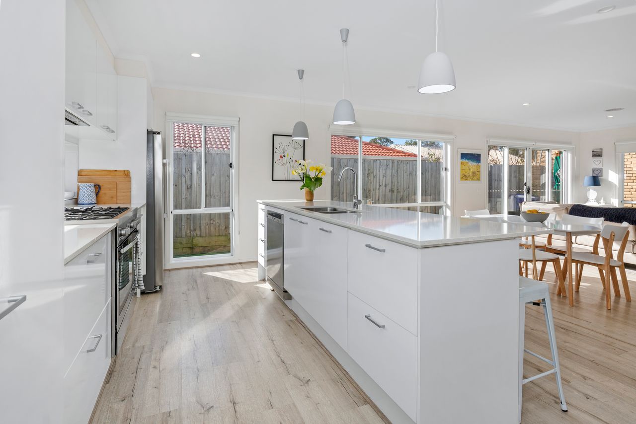 Tucked down a quiet street with Sisco Pizza just doors away at the end of the street along with the wine store, surf shop, Rye Yacht Club and beautiful foreshore parkland with barbecues, the sunny modern retreat lets you lap up beachside delights, while the supermarket, shops and restaurants of all cuisines are an easy five minute walk.