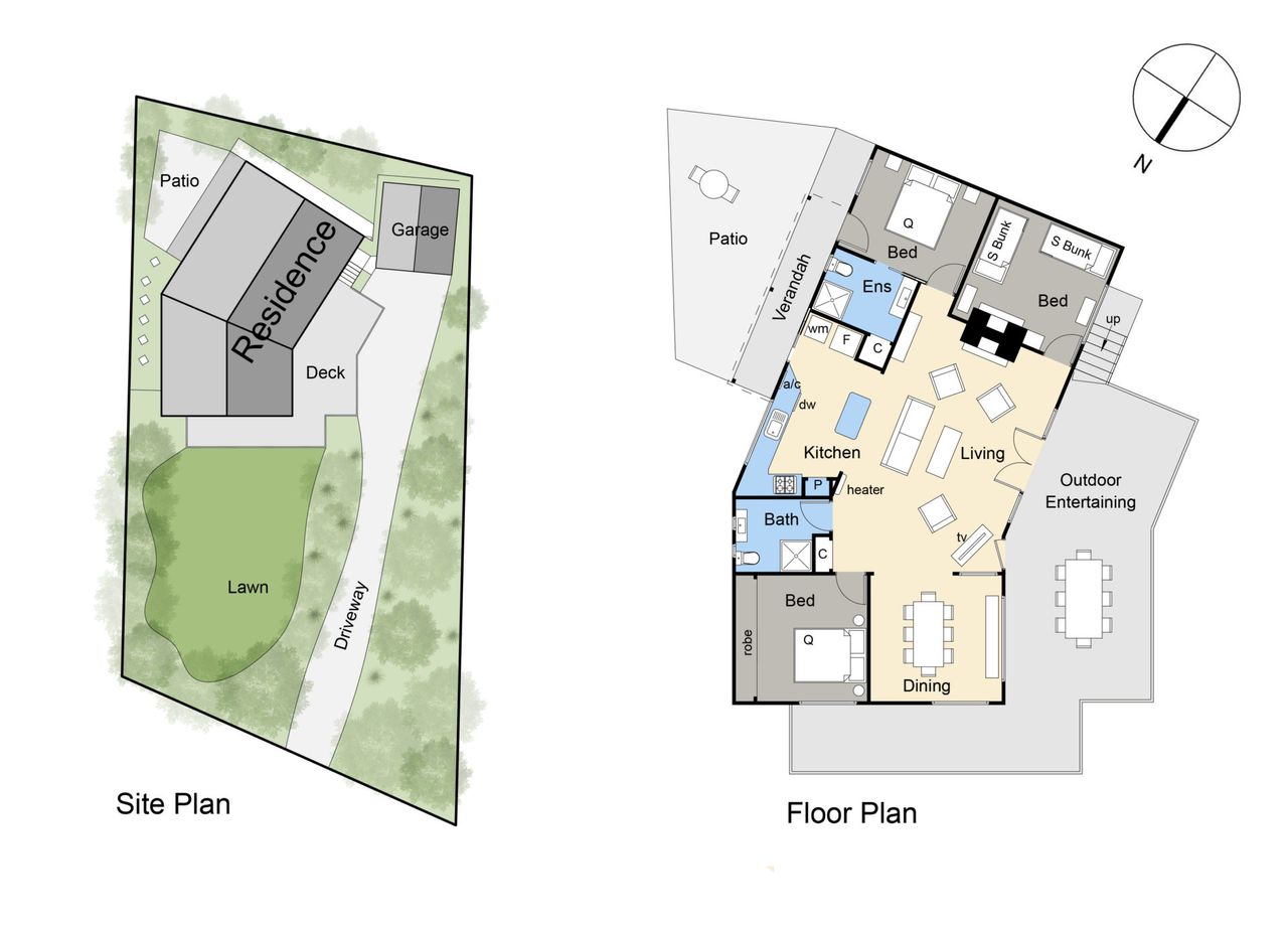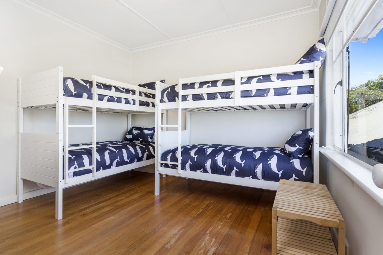 The kitchen it fitted with all the essentials including a Nespresso coffee machine, toaster, kettle, microwave, dishwasher and integrated laundry with washing machine and dryer. There are 2 queen-size bedrooms, one of which is an ensuite, a 3rd bedroom with 2 sets of bunks, and a2nd bathroom, the house will comfortably accommodate groups of 8 for fuss-free escapes to the coast.