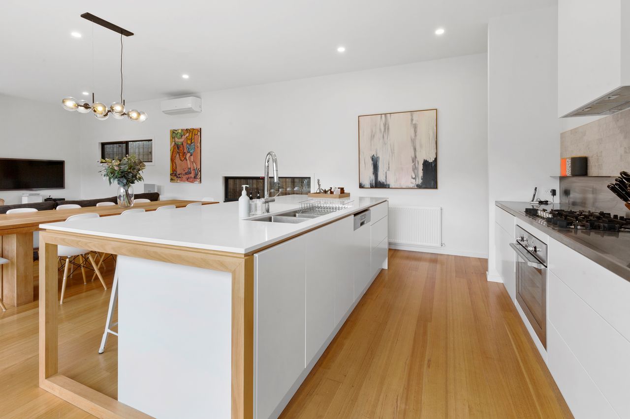 Designed to take advantage modern luxury with a seamless blend of bright contemporary spaces offering an interplay between interior and exterior living spaces which affords a sense of openness. The large open plan designer kitchen, inclusive of a butler’s pantry overlooks the open plan dining and second large living space (with a gas fireplace) and takes in the view of the in-ground pool, landscaped garden and vast decking offering perfect year round sheltered outdoor entertaining.