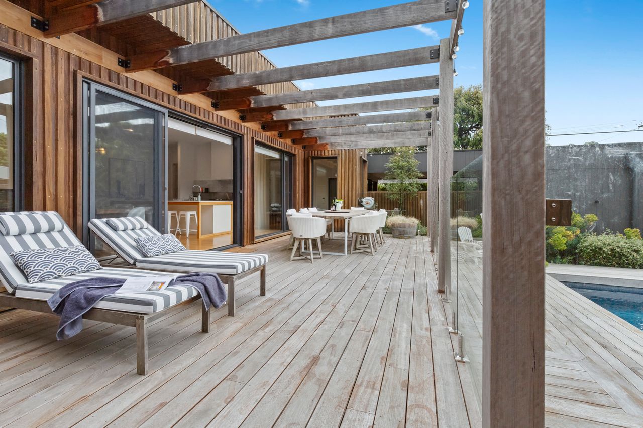 This stunning private holiday house, modern luxe interior, swimming pool, fireplace, Foxtel and wireless internet, fully fenced. Perfect holiday living!
