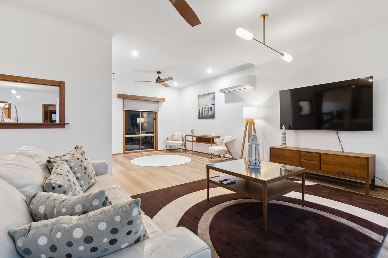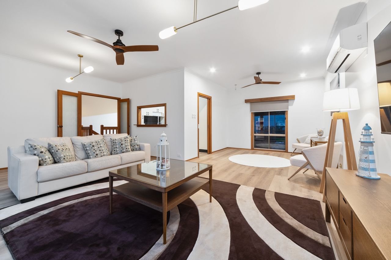 Other features include ducted heating and split system heating/cooling, ceiling fans, a separate laundry with toilet, front balcony to enjoy the beautiful sunsets, a rear decking area for entertaining and gardens for you to enjoy. Circulare driveway - perfect for not having to reverse the boat and plenty of additional car parking.