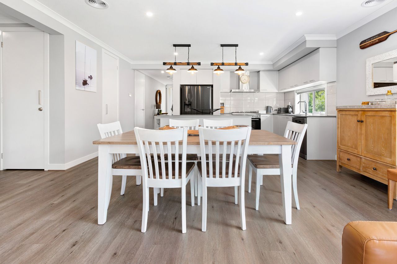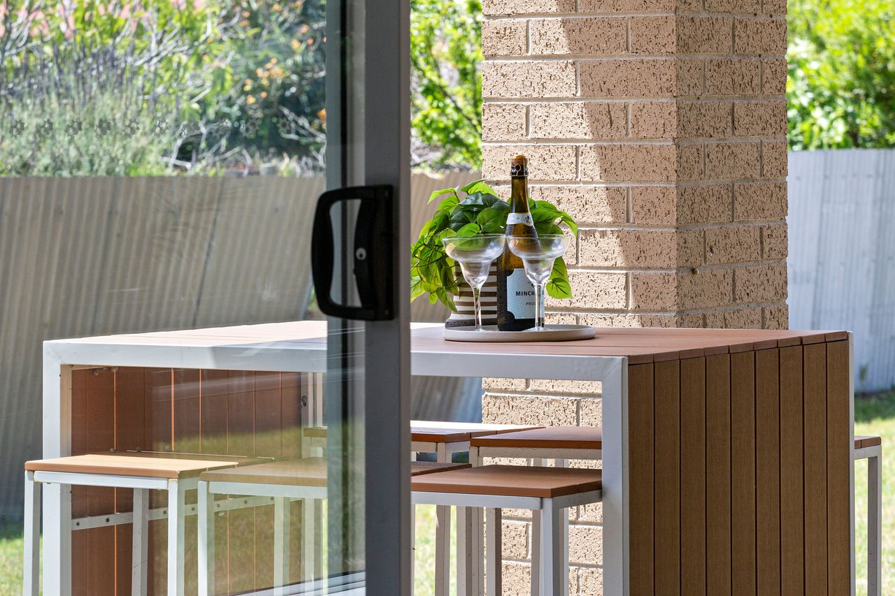 The stone-topped kitchen is well equipped for busy group stays including a double door fridge with ice/water, dishwasher, 900mm gas stove, microwave, a coffee pod machine and plenty of new cutlery and crockery, with seating along an island bench, a central dining table as well as an outdoor dining table beside the BBQ where you can relax with afternoon drinks while the kids play in the yard.