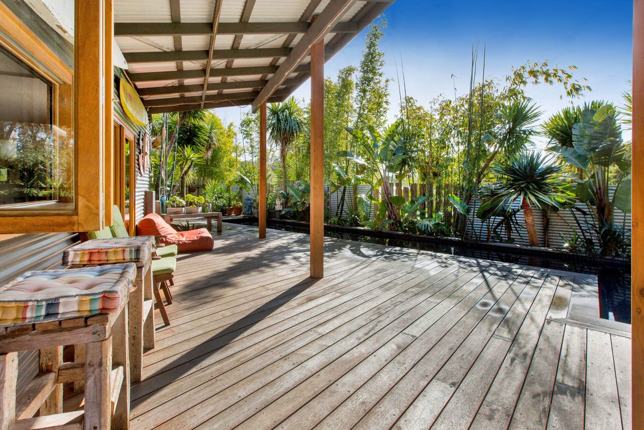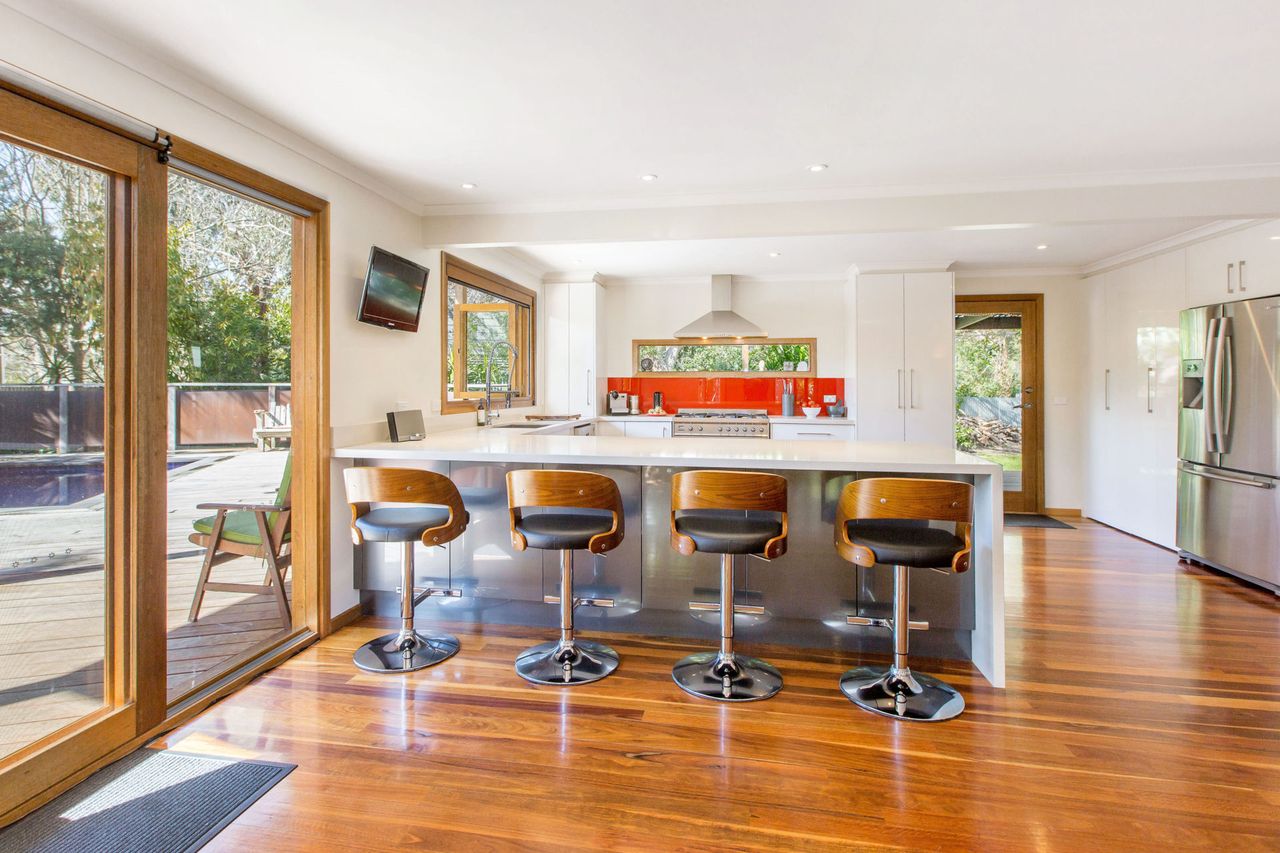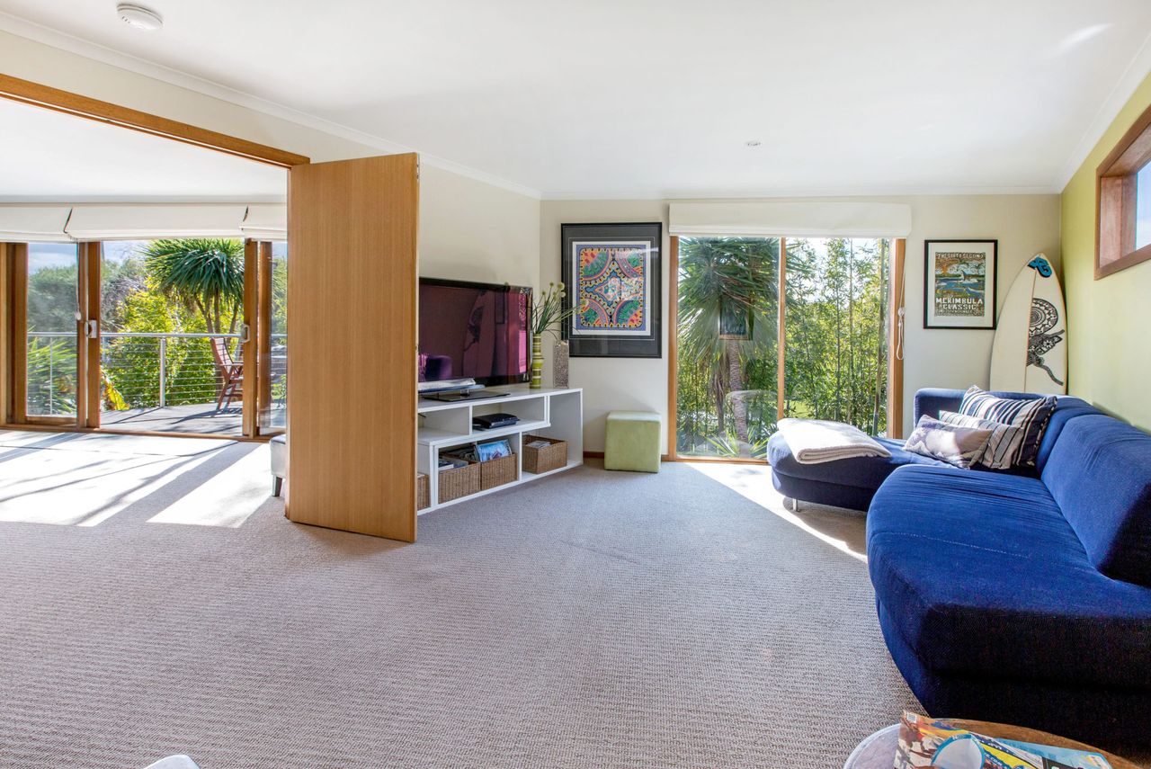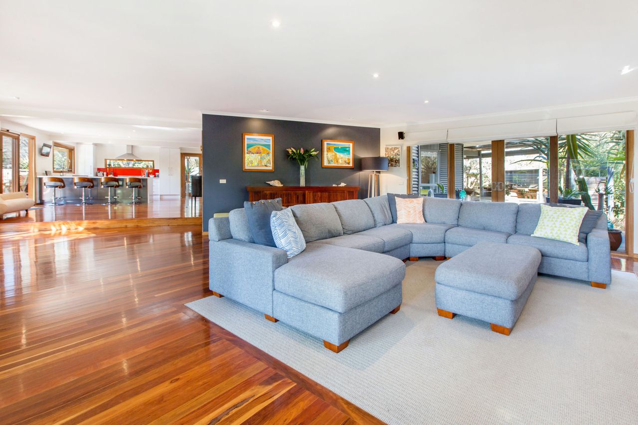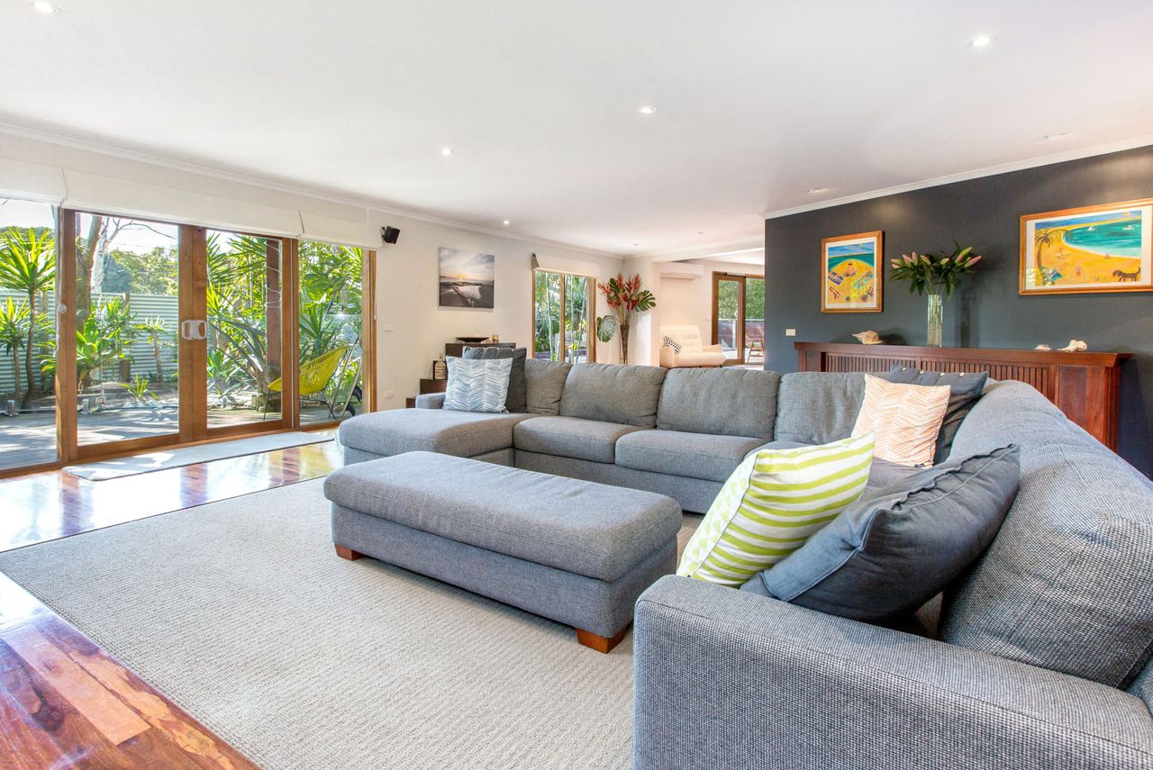 Cradled in absolutely privacy among paradisiacal gardens, buddhas and ornamental surfboards with a resort-style barbecue deck, outdoor lounge room and alfresco bar trimming the balmy heated swimming pool, this lavish home is surrounded by the best of the peninsula among award-winning wineries, golfing green and horse-riding trails, while the renowned hot brekkies of the neighbouring general store have Sunday mornings sorted before hitting the swell.