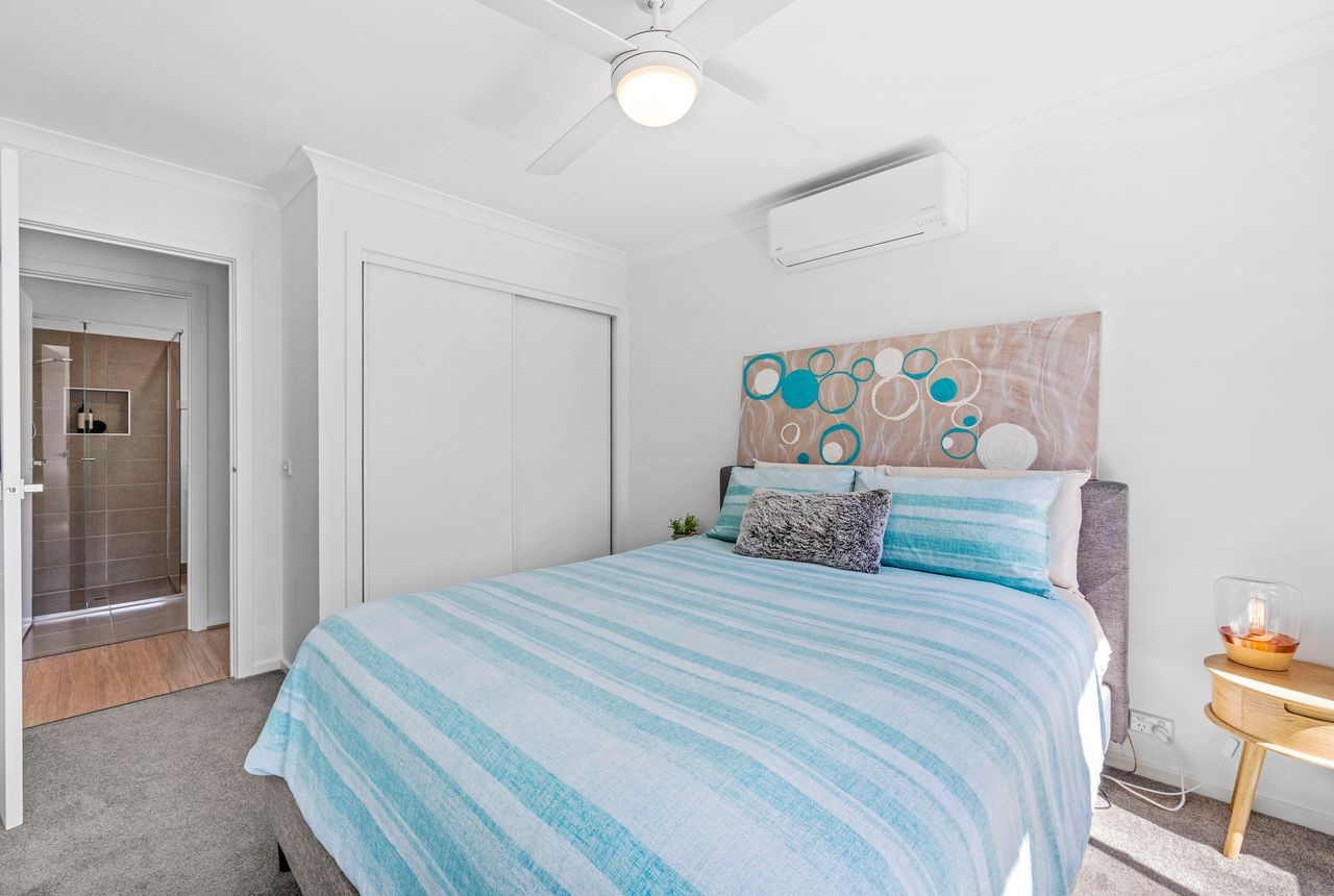 Set to sleep up to 8 people, the main bedroom has a King bed, an ensuite, walk-in robe and a private door to the alfresco area, while two other bedrooms with Queen beds share a sleek family bathroom with shower and a bath. A second lounge provides a quiet retreat for reading, kids’ movie time, or conversion into a fourth bedroom with the luxe fold-out couch.