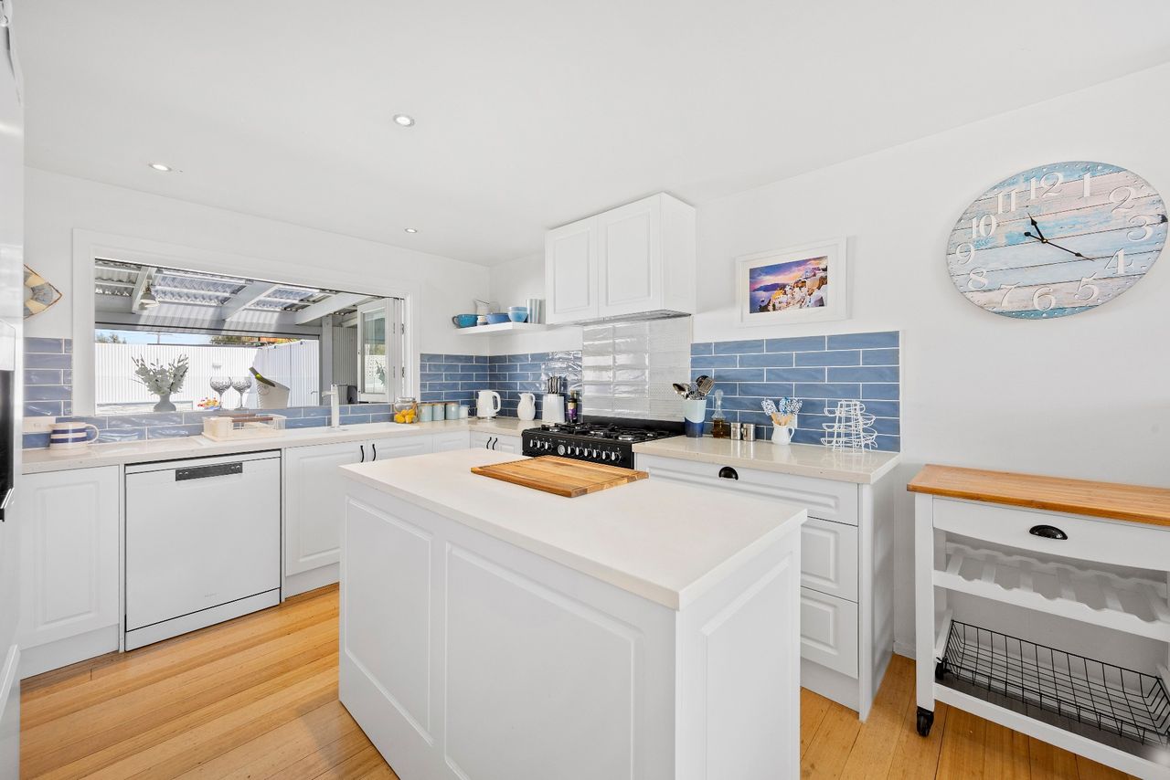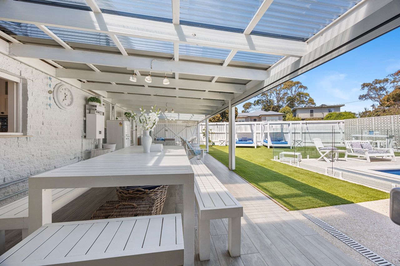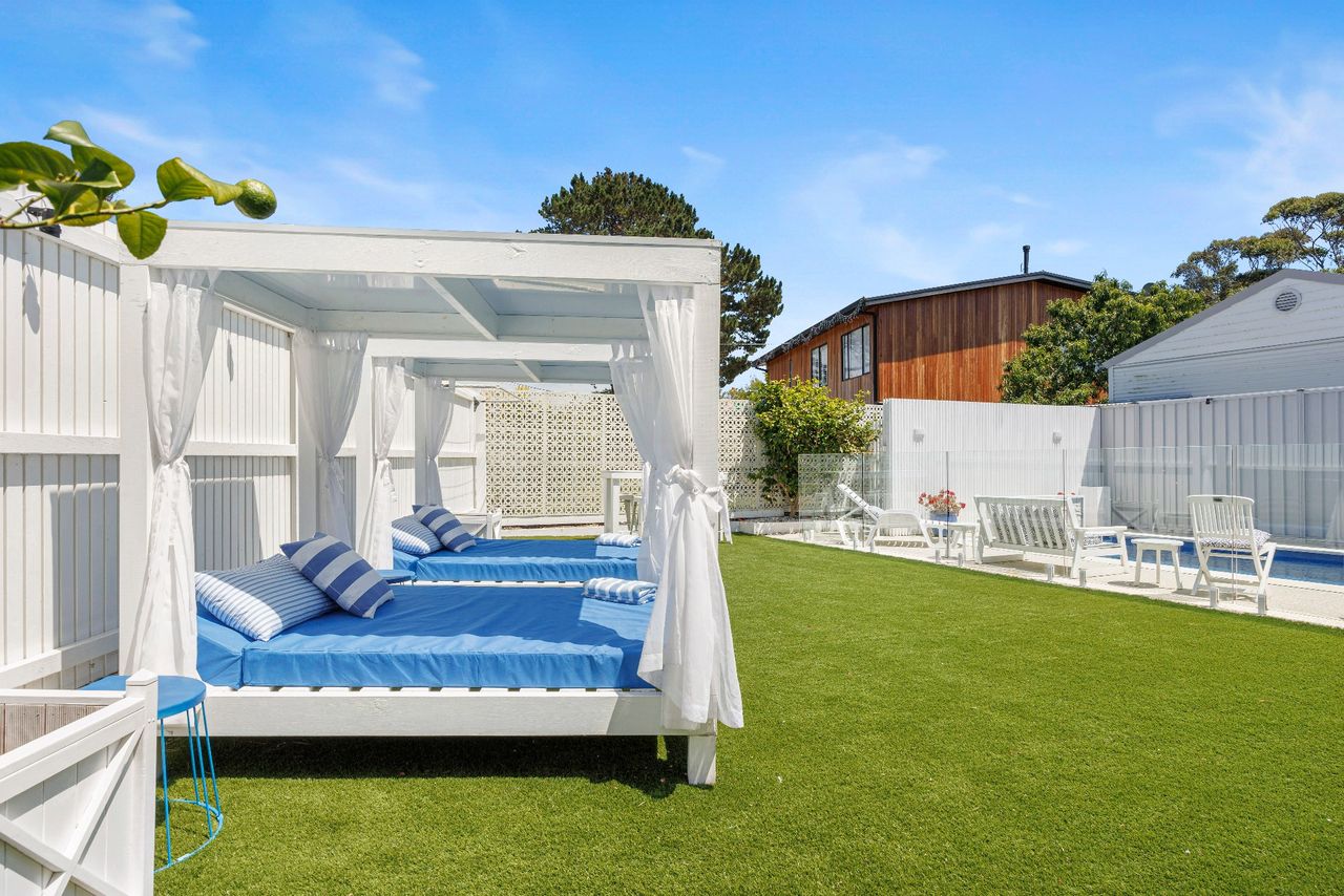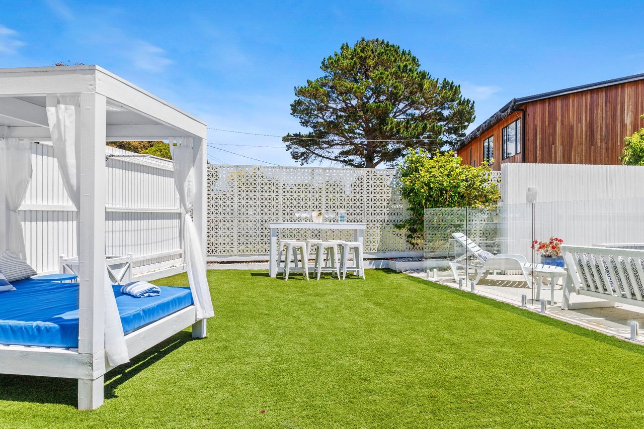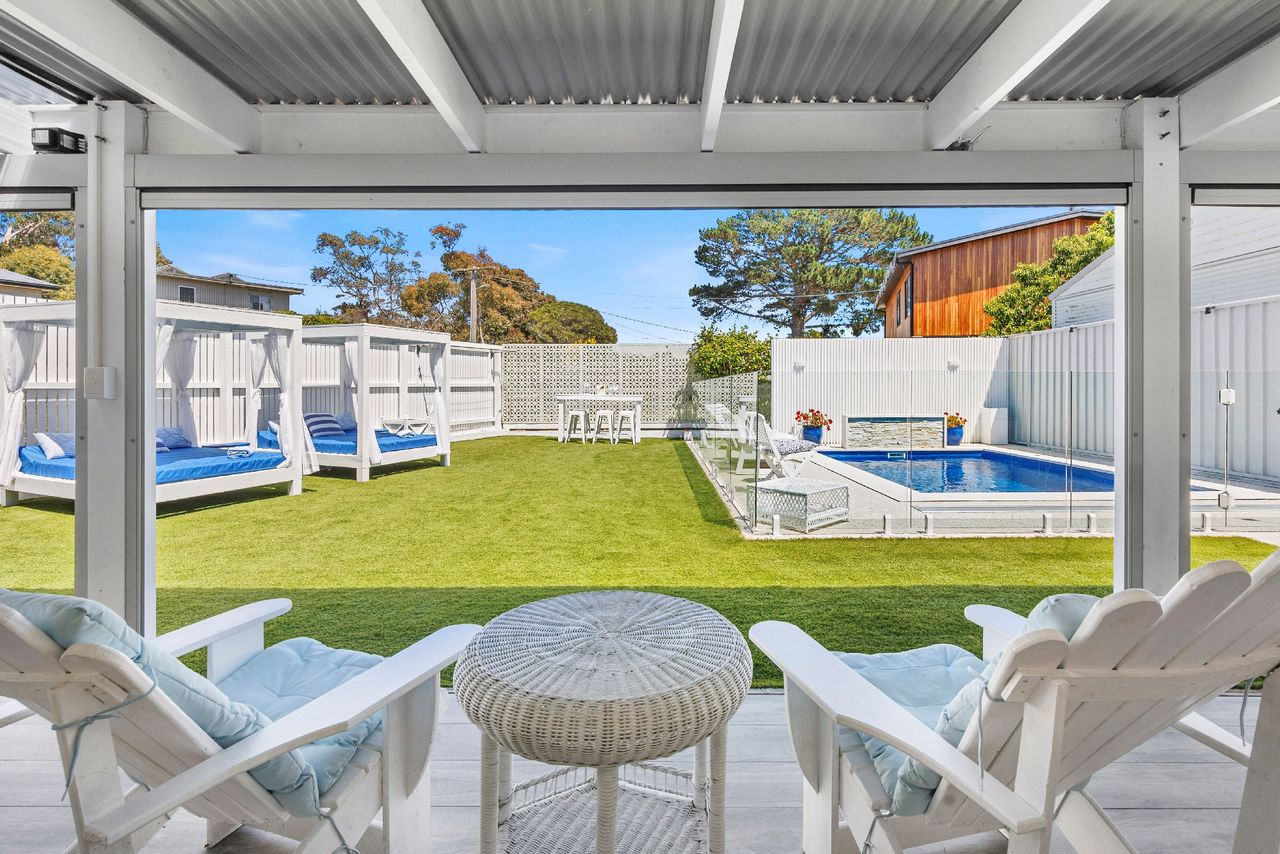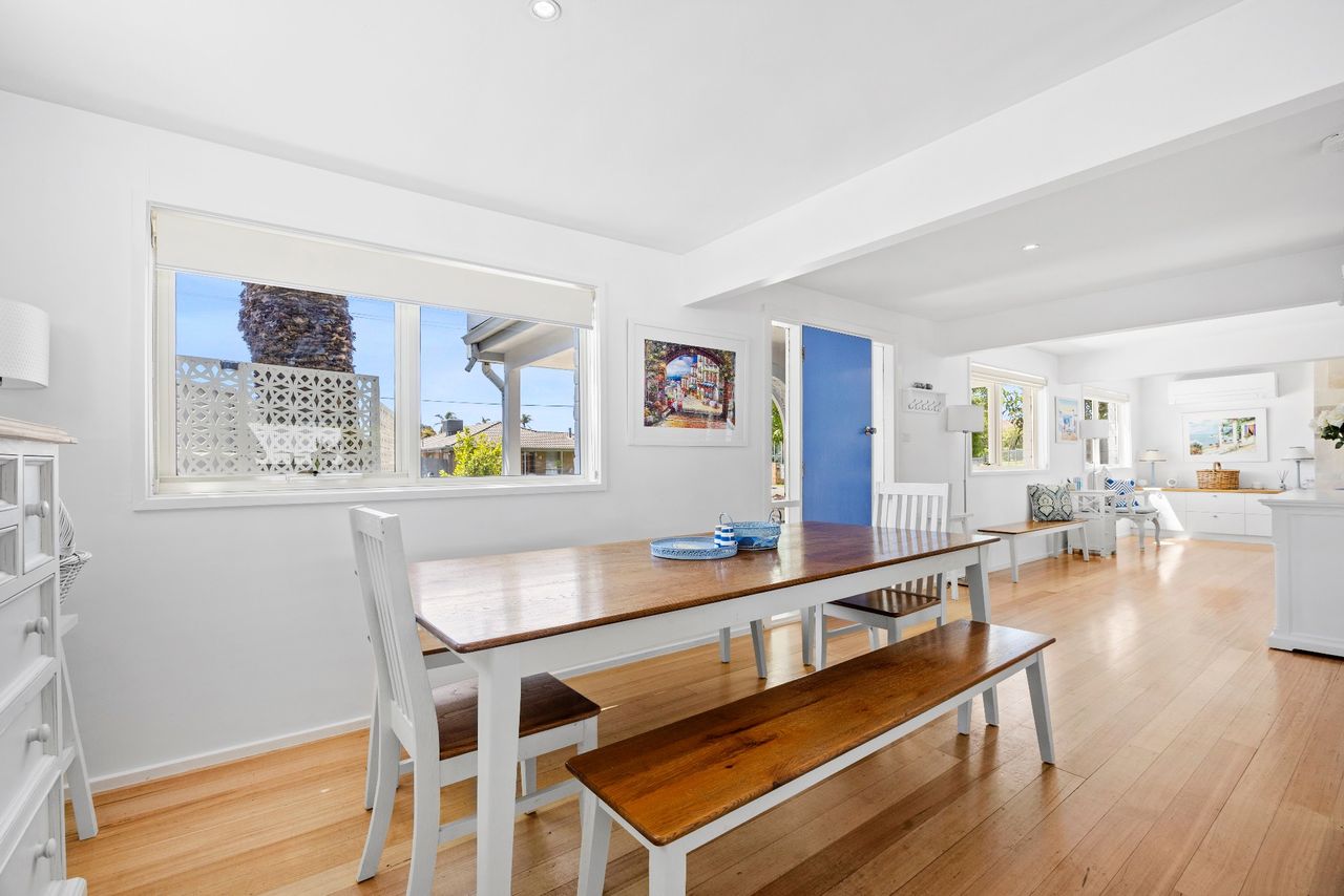 Perfect for families looking for a coastal getaway with stylish, new furnishings and a large yard, the home is just a 4 minute walk to the stunning foreshore and a short stroll to Safety Beach Country Club for those who enjoy a round of golf. With neutral tones complemented by splashes of vibrant blues, the inviting retreat includes 2 separate living zones with smart TVs, DVD players and comfortable sofas, bi-fold doors opening to a covered alfresco area with a gas barbecue and 10-seater outdoor table and a heated swimming pool behind glass balustrading with a sheet fountain that is spectacularly lit in the evenings.