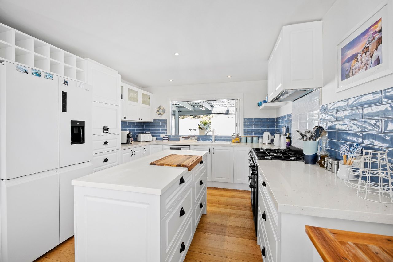 Complete with 3 bathrooms including a master ensuite with spa bath, laundry facilities plus a wood-burning fireplace and split-system air-conditioning, the configuration comprises 3 bedrooms with queen-size beds and a kids bedroom with 2 bunk beds, each named after a Greek Island.