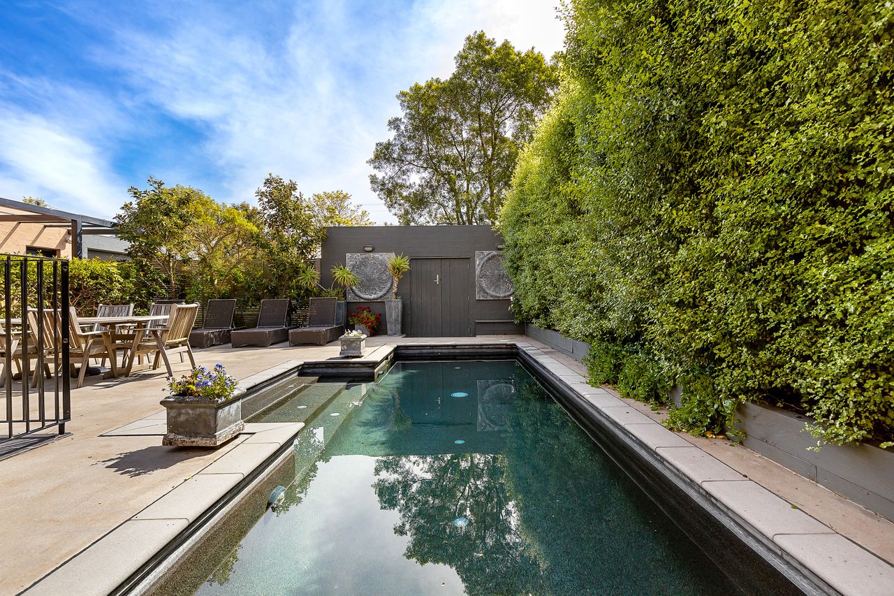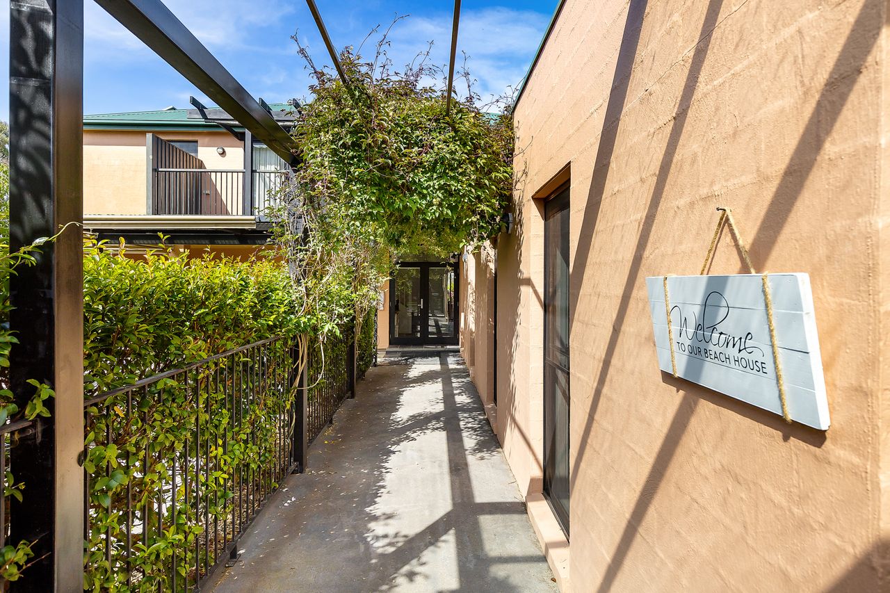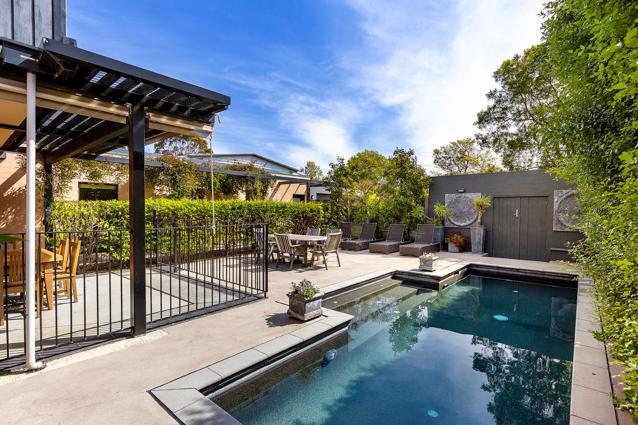 Ideal for large families or multiple couples/friend groups there is space for everyone to spread out or be together. Spend hours relaxing in the outdoor areas which have been lovingly landscaped and designed to accommodate large get togethers. On the cool, South side of the property is a private, shaded 8-10 seat alfresco dining area with BBQ and views of the majestic gum trees just beyond the property; on the bright and sunny North side is another fully sheltered 8 seat alfresco dining setting. The pool is shaded by mature hedges, lined with sun lounges and additional seating, and illuminated by in-pool lighting to create a magical ambiance when taking a dip in the evening.