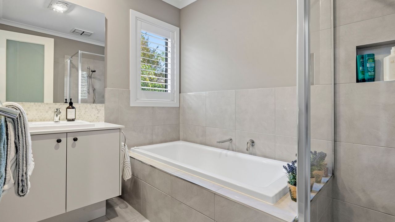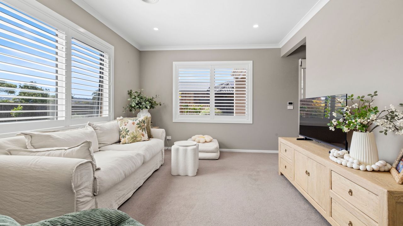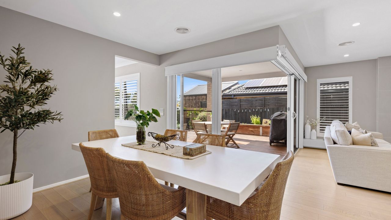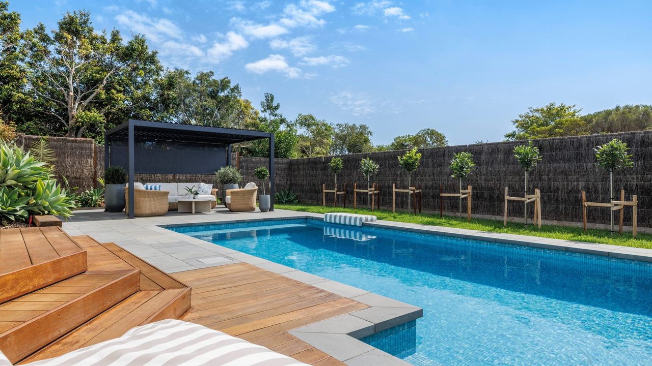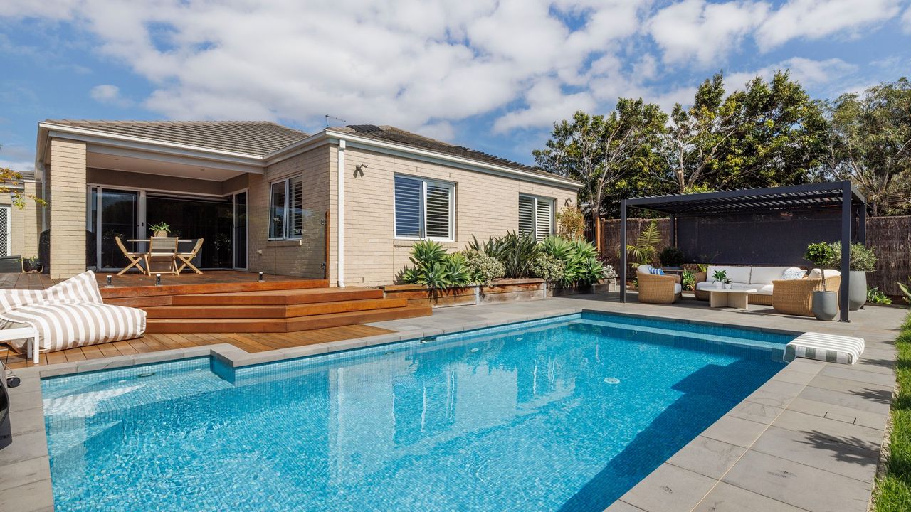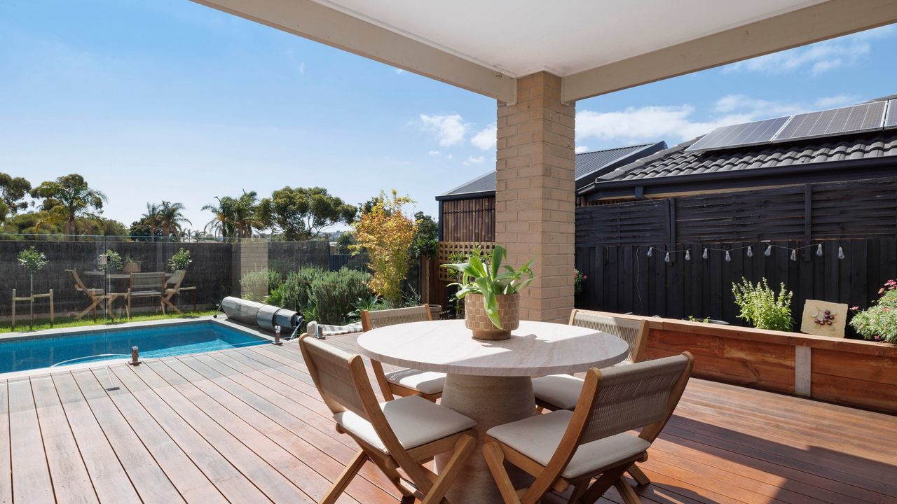 Outside your own private oasis awaits, where resort-style living takes centre stage. A sparkling solar-heated swimming pool invites you to unwind, while the expansive covered alfresco deck complete with an outdoor dining setting and Weber BBQ creates the perfect space for effortless entertaining.