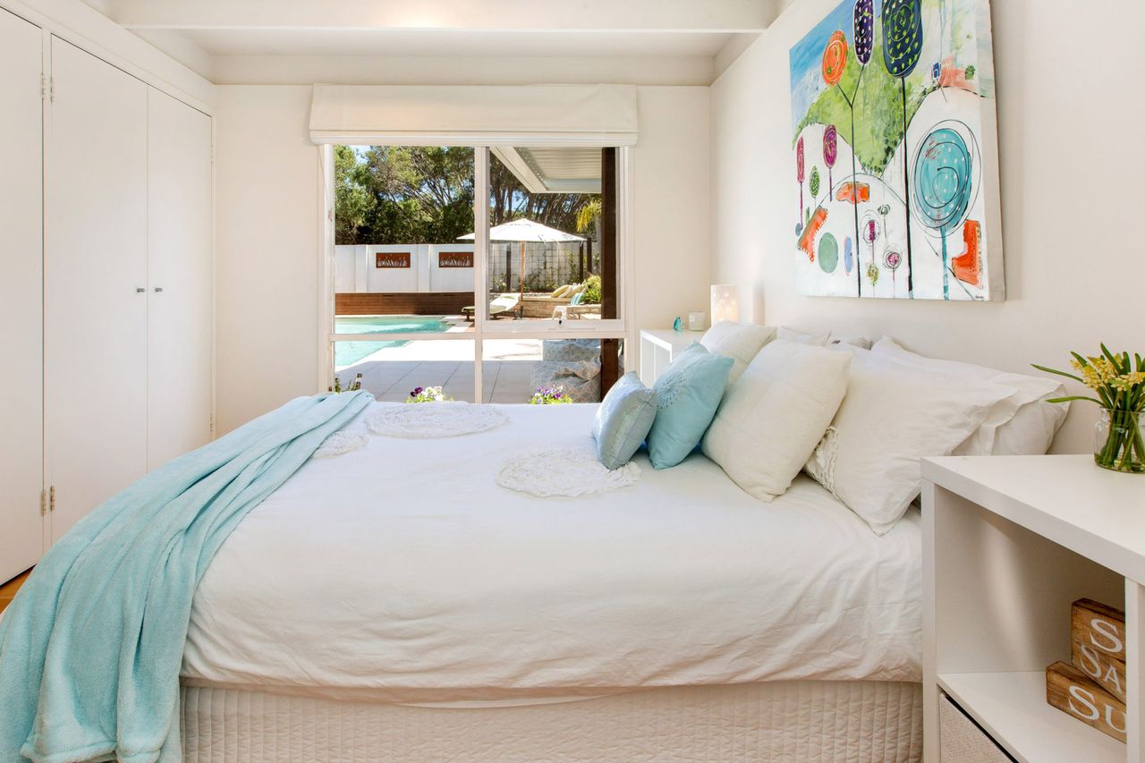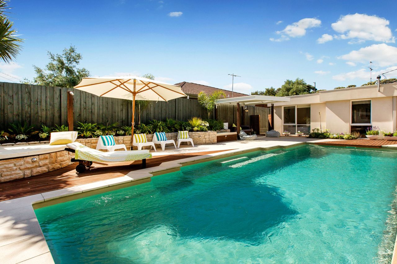 A heavenly seaside sanctuary with a glistening heated mineral pool, this luxury four-bedroom residence offers exquisite lodging on the Mornington Peninsulas narrowest strip.